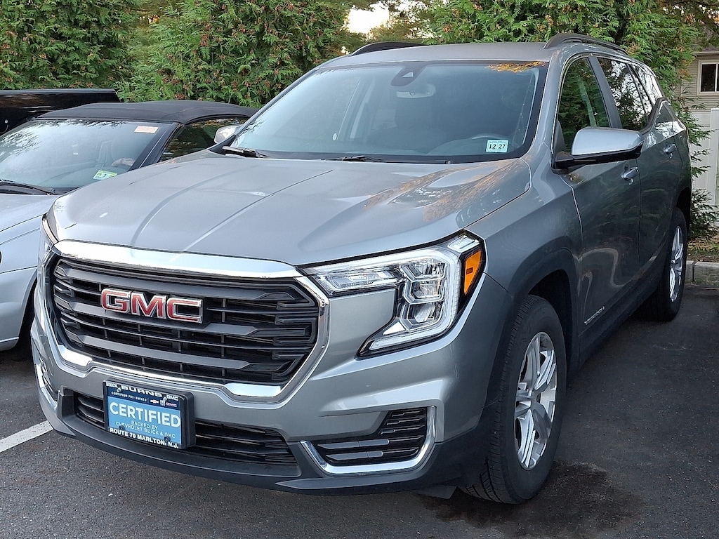 Experience dependable performance advanced safety and smart connectivity with the 2023 GMC Terrain SLE AWD. Finished in a striking Sterling Metallic with a refined Jet Black interior this compact SUV delivers a premium blend of style comfort and utility. Equipped with modern technology robust safety systems and convenience-enhancing packages this Terrain is ready for every journey from daily commutes to weekend adventures.**Key Features and Specifications:****Make:** GMC**Model:** Terrain SLE**Model Year:** 2023**Drivetrain:** AWD (All-Wheel Drive)**Engine:** 1.5L Turbo DOHC 4-cylinder**Transmission:** 9-Speed Automatic**Exterior Color:** Sterling Metallic**Interior Color:** Jet Black**Performance & Mechanical:*** Hill Descent Control* Stabilitrak Stability Control with Traction Control* 17"Painted Aluminum Wheels* Compact Spare Tire**Interior Features:*** Passenger Seatback Flat Folding* Urethane Steering Wheel* Power Windows with Driver Express Up/Down* 4.2"Multi-Color Driver Information Display* 6-Speaker Audio System**Exterior Highlights:*** LED Headlamps* LED Daytime Running Lamps* LED Signature Tail Lamps**Advanced Safety & Security:*** GMC Pro Safety Package: * IntelliBeam Auto High Beam * Following Distance Indicator * Forward Collision Alert * Lane Keep Assist with Lane Departure Warning * Automatic Emergency Braking * Front Pedestrian Braking* Rear Vision Camera* Teen Driver Technology* Theft Deterrent System* Tire Pressure Monitor with Tire Fill Alert**Connectivity & Technology:*** 7"GMC Infotainment System with Color Touchscreen* Wireless Android Auto & Apple CarPlay* Bluetooth Audio Streaming and Voice Command Passthrough* OnStar & Wi-Fi Hotspot Capable* Two USB Charging-Only Ports + Two Additional USB Ports and Auxiliary Input Jack* SiriusXM Capable (trial included)* Remote Keyless Entry and Remote Open**Optional Packages & Added Features:*** **Driver Convenience Package:** * Remote Vehicle Start * Roof Rack Side Rails * Heated Driver & Front Passenger Seats * Dual-Zone Automatic Climate Control * 8-Way Power Driver Seat with Lumbar Support* **Terrain Pro Safety Plus Package:** * Rear Park Assist * Safety Alert Seat * Adaptive Cruise Control * Heated Power Outside Mirrors with LED Turn Signal Indicator * Side Blind Zone Alert and Rear Cross Traffic Alert* **Side Blind Zone and Rear Cross Traffic Alert****Fuel Efficiency:*** Combined: 26 MPG* City: 24 MPG* Highway: 28 MPG**Safety Ratings:*** 5-Star Government Safety Ratings (NHTSA)GMC Certified Pre-Owned Details: * Transferable Warranty * 172 Point Inspection * 24 months/24000 miles (whichever comes first) Certified Pre-Owned Scheduled Maintenance Plan and 3 days/150 miles (whichever comes first) Vehicle Exchange Program. SiriusXM 3-month trial subscription * Limited Warranty: 12 Month/12000 Mile (whichever comes first) from certified purchase date * Vehicle History * Powertrain Limited Warranty: 72 Month/100000 Mile (whichever comes first) from original in-service date * Warranty Deductible: $0 * Roadside Assistance