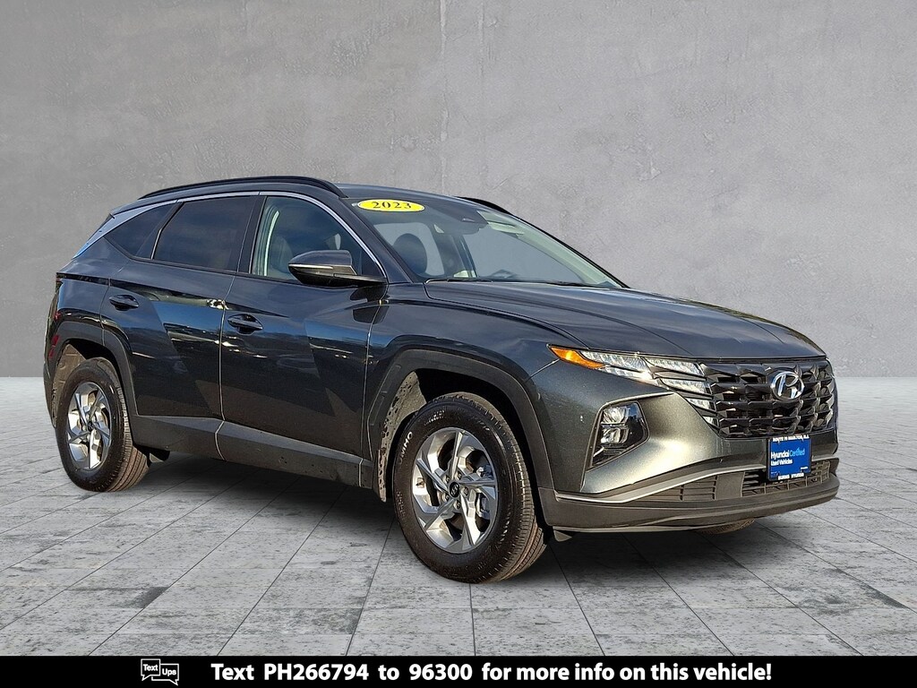 2023 Hyundai Tucson SEL AWD Stylish Safe & Smart SUV! Modern design advanced safety and impressive comfort come together in this 2023 Hyundai Tucson SEL AWD finished in Amazon Gray with a Black interior. This SUV blends everyday practicality with sleek looks and advanced tech perfect for families commuters or weekend adventurers. Performance & Efficiency:2.5L 4-Cylinder Engine with 187 HP8-Speed Automatic Transmission with SHIFTRONIC®All-Wheel Drive for confidence in all weatherFuel Economy: 25 MPG Combined (23 City / 28 Highway) Interior & Technology:Heated Front SeatsPower Driverâs Seat with Lumbar SupportDual-Zone Automatic Climate Control8 Touchscreen DisplayApple CarPlay® & Android Auto Bluetooth® Hands-Free ConnectivityProximity Key with Push-Button StartRearview Camera Safety & Driver Assistance:Forward Collision-Avoidance AssistBlind-Spot Collision-Avoidance AssistLane Keeping & Lane Following AssistRear Cross-Traffic Collision-AvoidanceDriver Attention WarningTop 2022 IIHS Top Safety Pick+ Rating Exterior: Amazon Gray Drivetrain: All-Wheel Drive Fuel Economy: 25 MPG Combined Interior: Black Cloth One of the most comfortable and well-equipped SUVs in its class Excellent fuel economy for an AWD vehicle Backed by Hyundaiâs Americaâs Best WarrantyEnjoy modern design cutting-edge safety and peace of mind this 2023 Hyundai Tucson SEL AWD has it all. Schedule your test drive today!